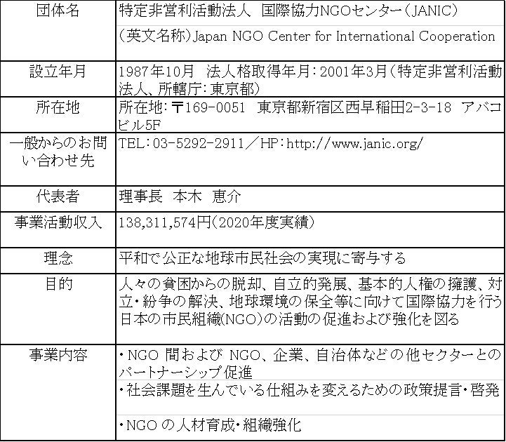 特定非営利活動法人国際協力 NGO センター(JANIC)