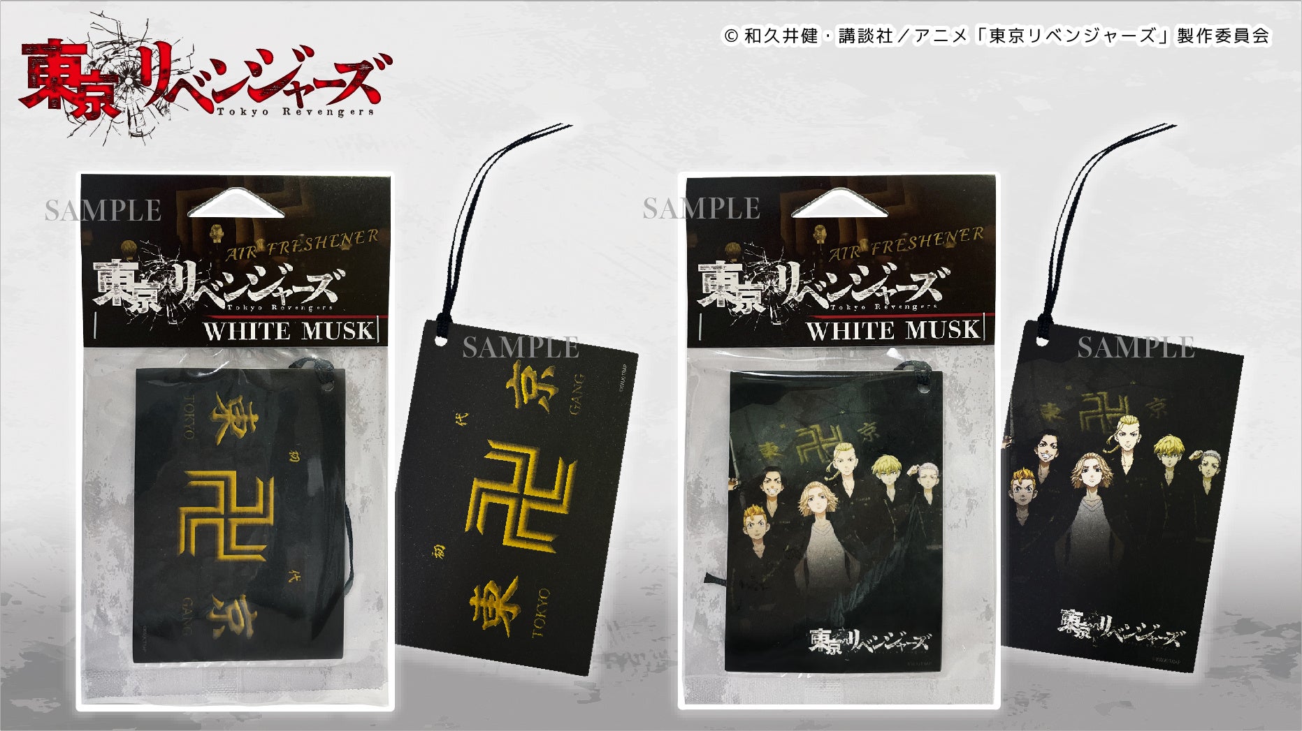 エアーフレッシュナーは【東京卍會】と【東京卍會メンバー】の絵柄2種類で爽やかでほのかに甘いホワイトムスクの香りとなっております。