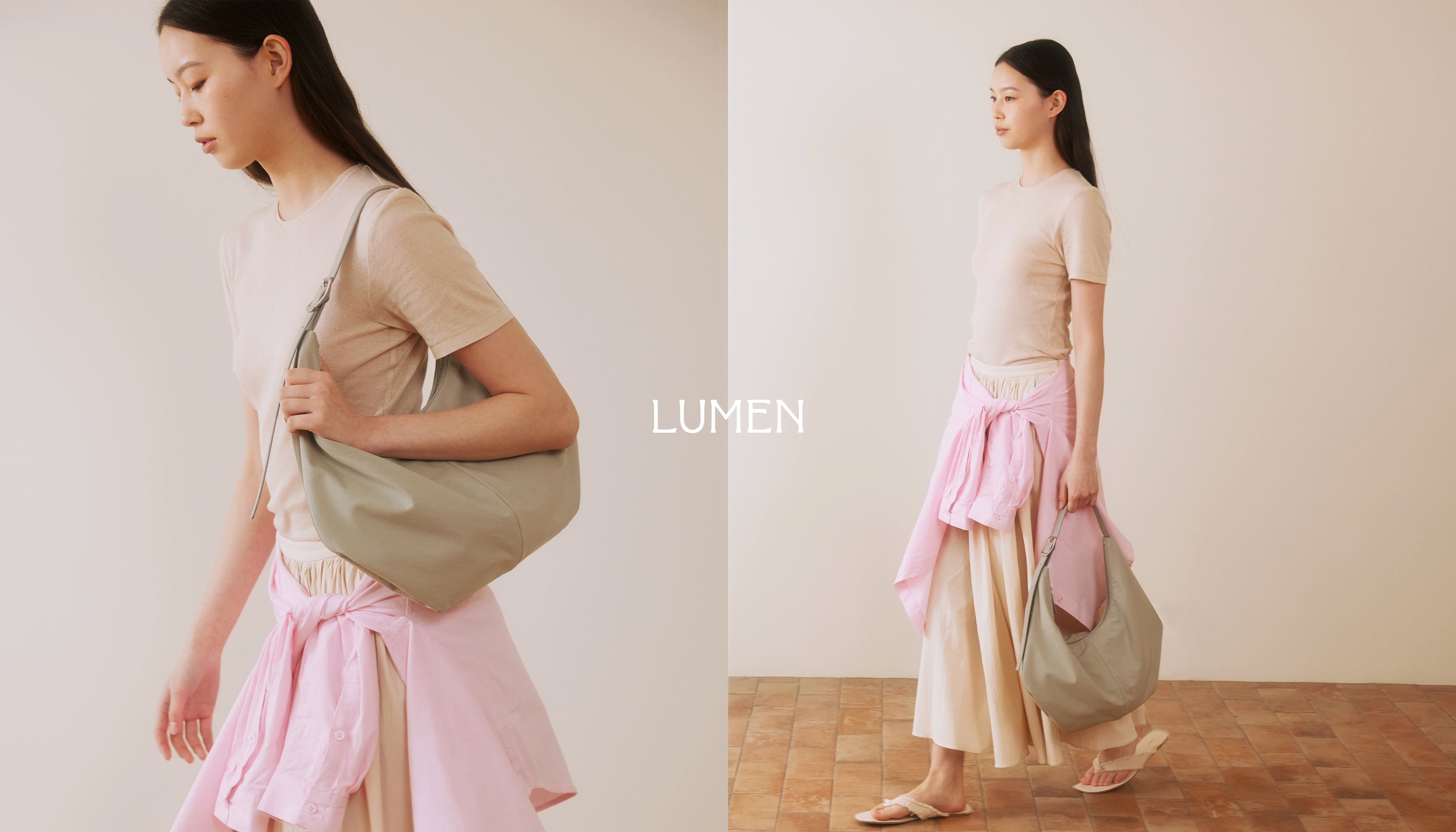 ルメンは、年齢・性別・シーンを問わず、思うがままに輝けるスタイリングのために、仕様と素材にこだわりを持っています。自社内にしっかりとした生産背景を持ち、熟練の職人と共に、大切に商品を作り上げています。そのため、「金属装飾の最小化」と「ロゴプレーの非使用」に注力できます。装飾よりも素材本来の持つしなやかさ、高級感などを最大限に活かしたアイテムの提供を目指しています。