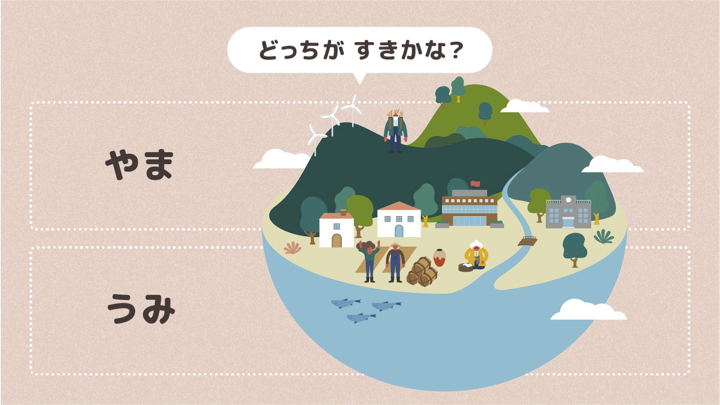 『えらぶっく』は、世代を問わず親しまれている「ももたろう」「さんびきのこぶた」「アリとキリギリス」を題材に、SDGsの考え方に触れながら結末を自分で作り上げていくデジタル絵本です。