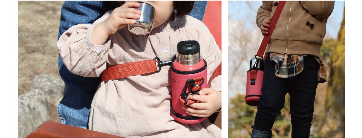 厚手の生地を使った可愛いフォルムと、底面パーツの生地を2枚重ねることで耐久性も持たせ、衝撃を緩和し、水筒の破損をしっかり防ぎます。ボトルに合わせてカラーも3色からお選びいただけます。