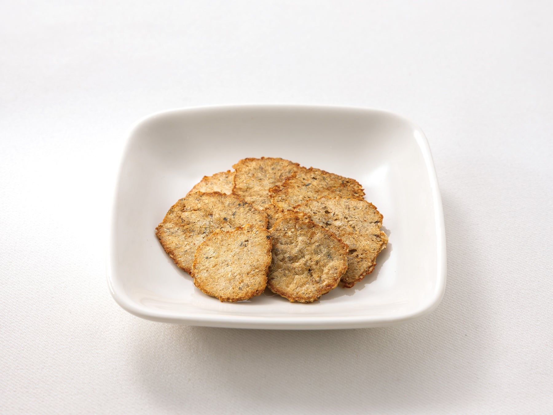 瀬戸内海沖で水揚げされたクロダイを手作業で捌き、骨の除去とミンチ加工をした後、熟練の職人が水分を飛ばしながら1枚1枚丁寧に焼き上げました。