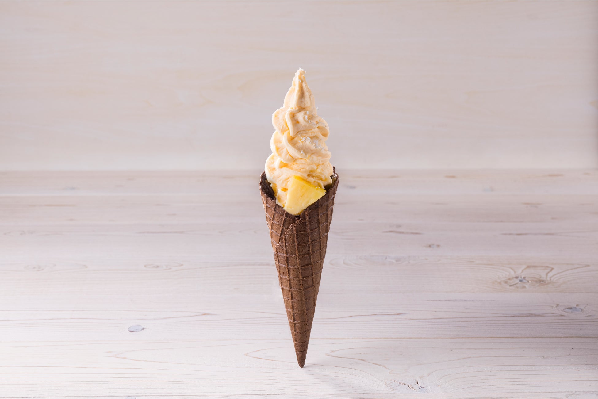 14種類のラインナップにコーン(+50円)が追加され、【なめるなよ】の目玉となる【冷凍フルーツ】をアイスの中に入れることで、絶妙なタイミングで解凍されたフルーツを召し上がっていただけます。