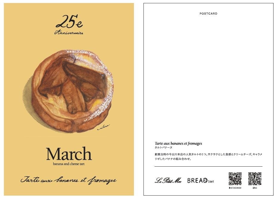 京都発、 本格フレンチスタイルのブーランジェリー「Le Petit Mec(ル・プチメック)」は、今年10月に25周年を迎えるにあたり、年間を通して、毎月、記念特別商品の発売及びコラボポストカードプレゼント、手提げ紙袋のコラボデザインVerの展開など、25周年記念企画を、3月12日(日)から開始します。