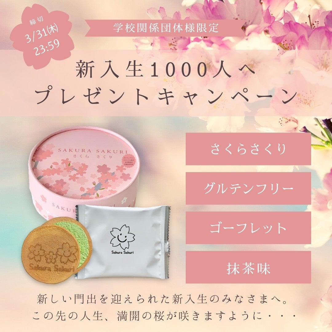「コロナ禍で入学式を迎えられる学生の皆様を対象に、“入学おめでとう”を伝えたい」。「さくらさくり~玄米粉で焼き上げたグルテンフリーゴーフレット 抹茶味~」を1000名様に無料配布を発表
