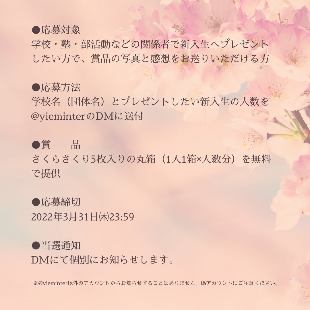 - 【応募方法】学校名(団体名)とプレゼントしたい新入生の人数を@yieminterのDMに送付