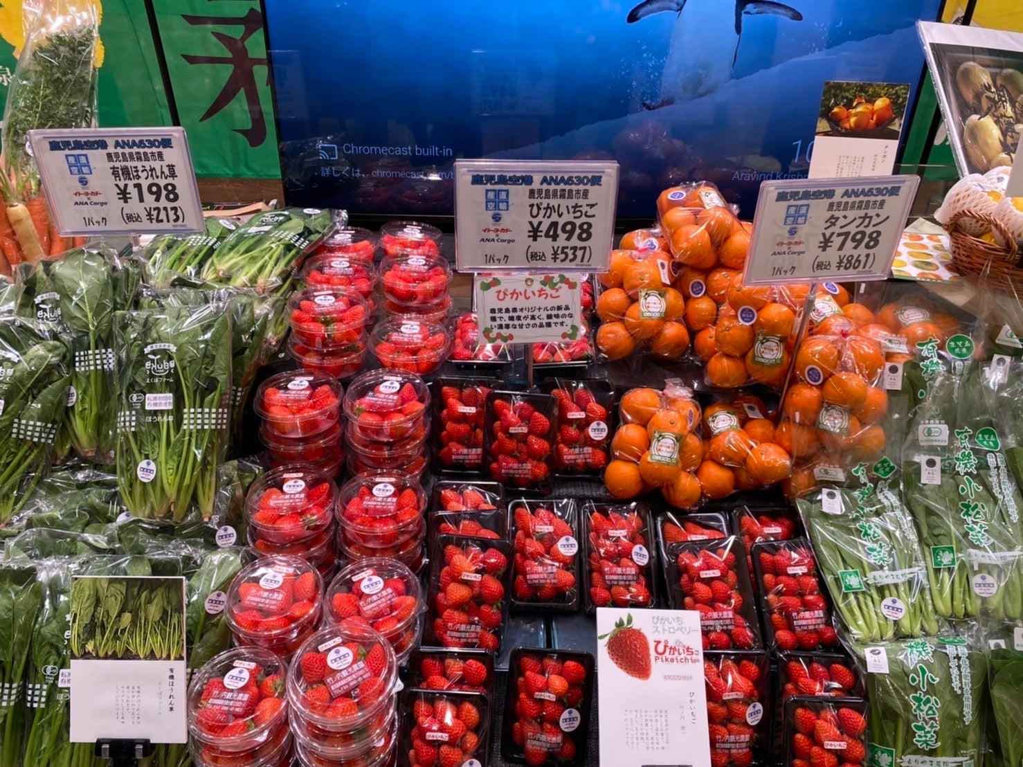 ・ANAの産直空輸の取組を活用し、収穫からの短い時間で新鮮な野菜を店頭にお届け。