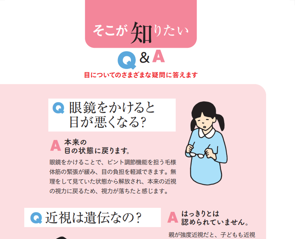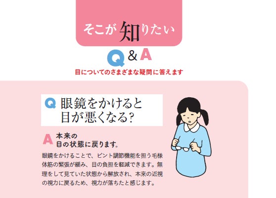 今後も、一人ひとりに最適なメガネを提案するアイケアの一環として、目に関する正しい情報をお客様へお届けするため、全5回に分けて冊子を制作、全国の「眼鏡市場」店舗にて無料配布を予定しています。