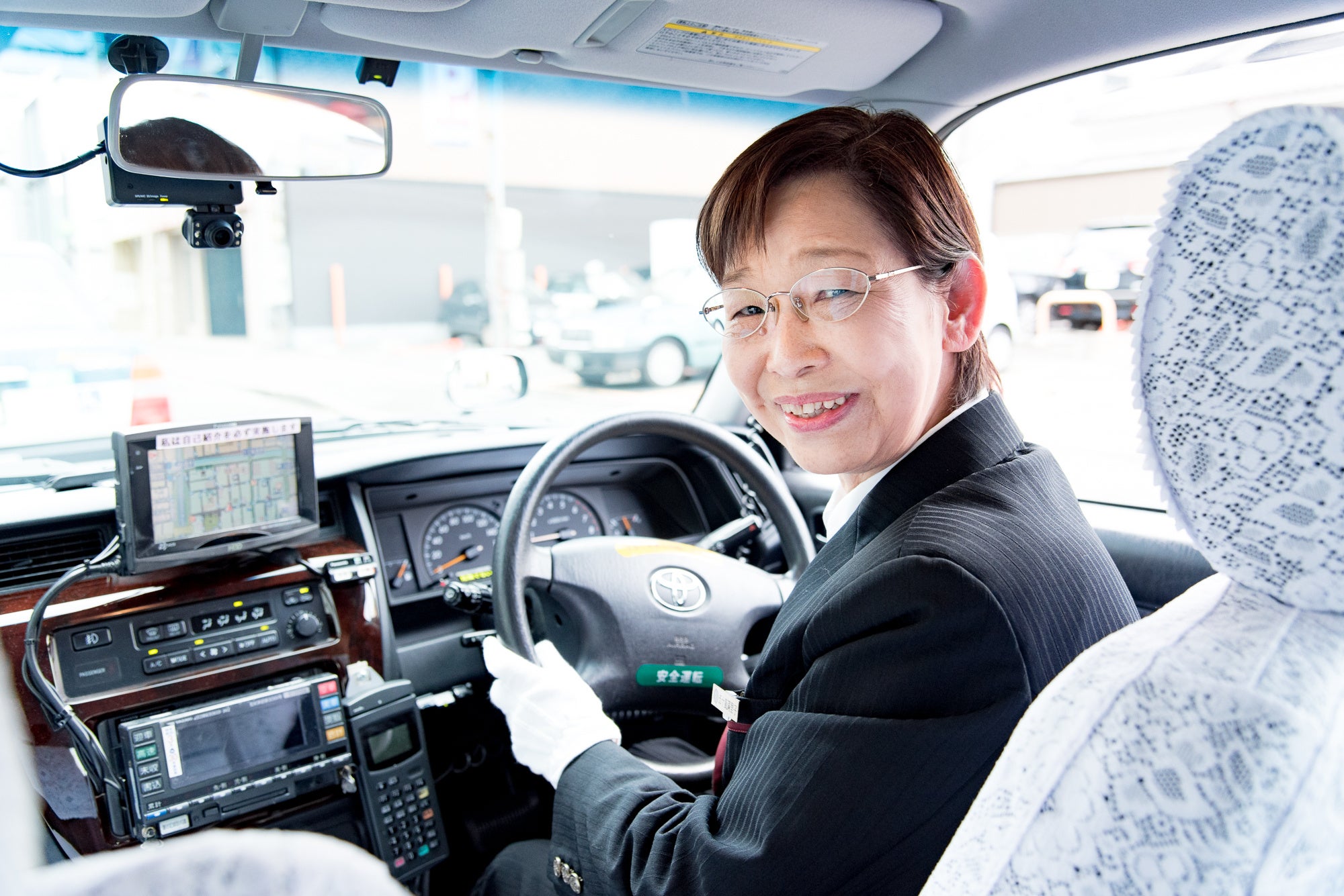 また車内にはSOSボタンがあり、緊急時に押すと上の行灯が赤く光って周囲に助けを求める。SOSのボタンが押されると同時に、一番近くにいる仲間のタクシーが2台すぐに集まるシステムになっている。つばめタクシーの全車両は1303台。名古屋市内で一番台数も多いので、すぐに駆けつけることが可能。