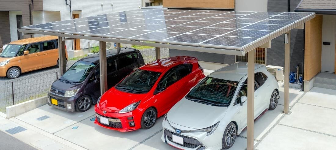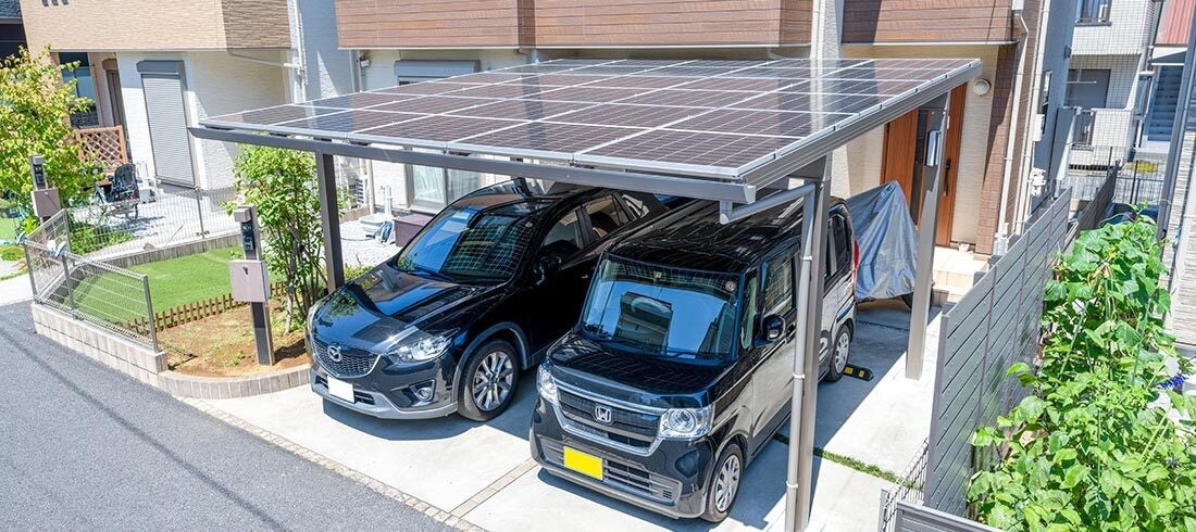 カーポートの屋根の部分に太陽光パネルを設置した車庫のことを指します。太陽光パネルは、住宅の屋根に設置されることが多いですが、実はカーポートにも設置して太陽光発電ができます。ソーラーカーポートを設置することで、駐車スペースのデッドスペースを有効活用し、電気代の削減、災害時の備え、環境問題の改善などのメリットを得ることができます。