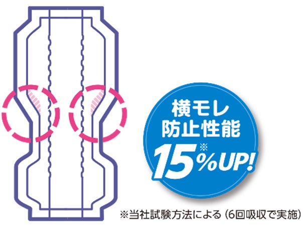当該商品は、より安心してお使いいただけるように、お困りの方が多い‟足まわりからのモレ防止性能”を改良いたしました。加えて、すばやく尿を引き込む新表面シート※を採用し、排尿時の不快感を軽減するとともに、さらにお肌にやさしくなりました。 (※9回吸収のみ)