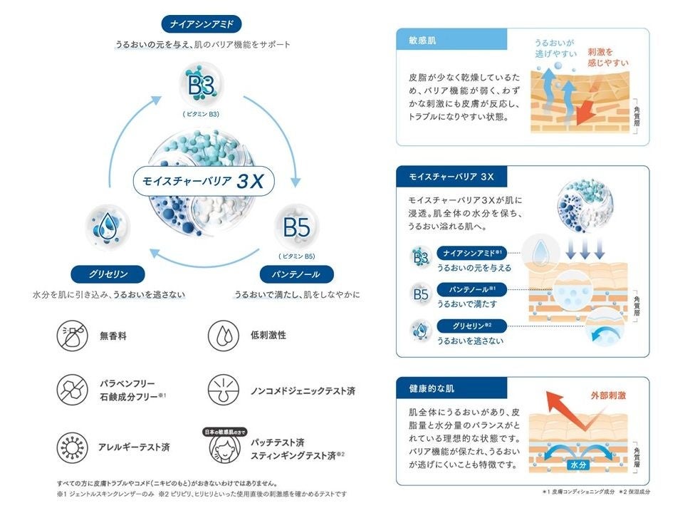 〈皮膚科学発想に基づく、製薬会社独自の処方「モイスチャーバリア3X」〉