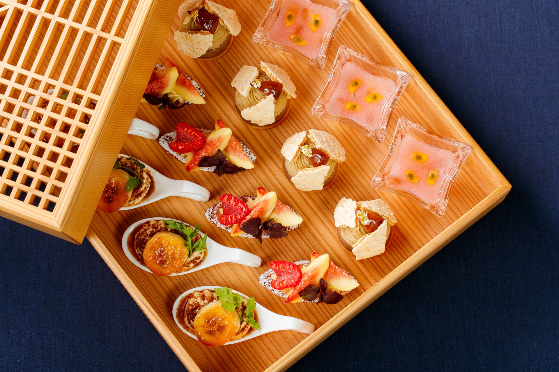 水菓子ともいわれ、デザートやスイーツとして供されることの多いフルーツ。その枠を取り払い、フルーツとあわせる食材との“出会い(邂逅)”による、新しいフルーツの味わいを発見・追求したメニューをご提供いたします。