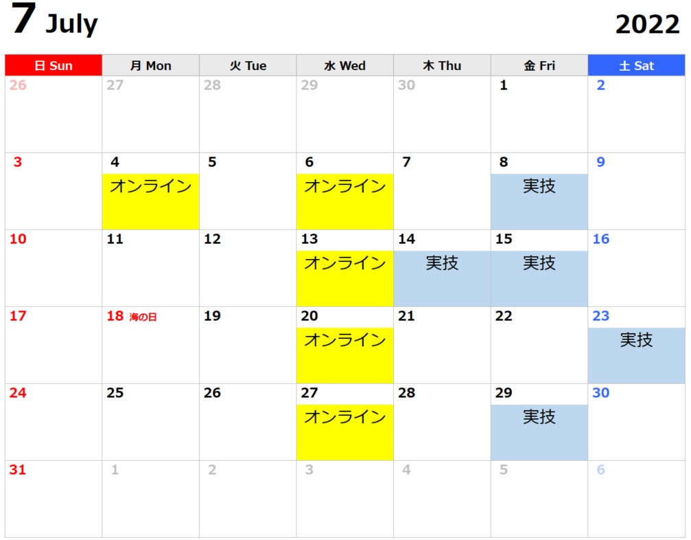 実技講習時間内にペーパーテストおよび実技テストを実施いたしますので、オンライン座学講習は実技講習より前の日程をお選びください。