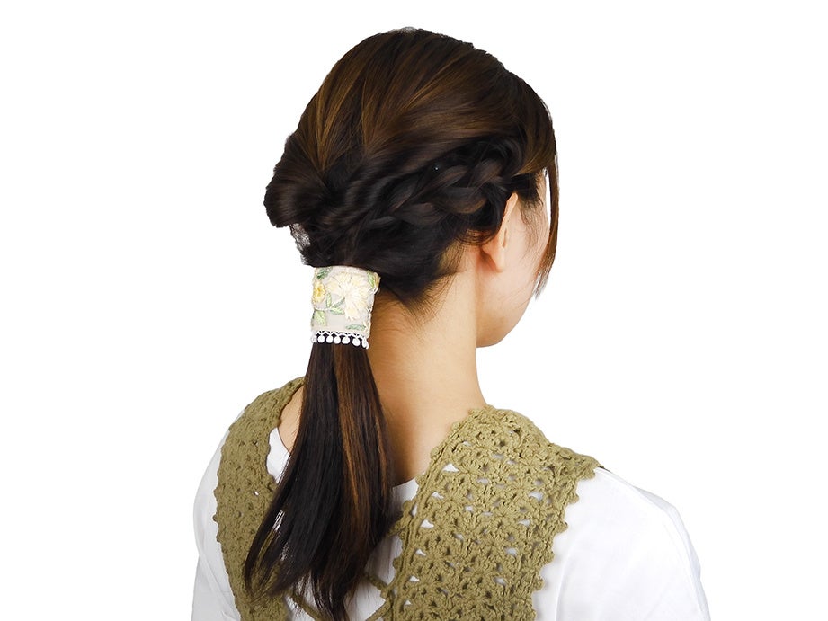 結んだヘアゴムにフックをひっかけるだけで、簡単にヘアアレンジができるアイテムです。