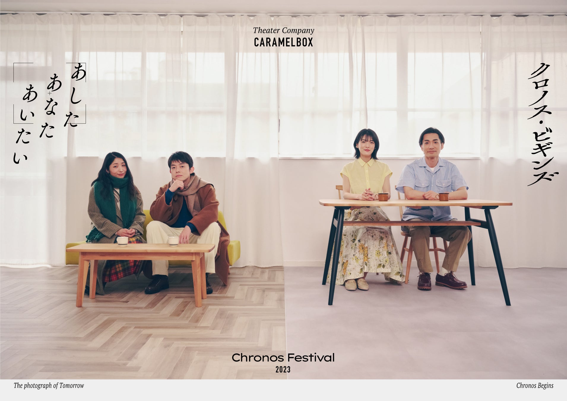 演劇集団キャラメルボックスは、活動休止期間を経て2021年12月に代表作『サンタクロースが歌ってくれた』を持って活動再開を報告していた。今回は、 『黄泉がえり』『おもいでエマノン』などで知られる梶尾真治の『クロノス・ジョウンターの伝説』を原作とした、劇団でも人気のクロノスシリーズの二本立てとなる。「クロノス・フェスティバル2023」と銘打ち、新作『クロノス・ビギンズ』(原作:梶尾真治『クロノス・ジョウンターの黎明』 徳間書店)と大幅に改訂された『あしたあなたあいたい』(原作 梶尾真治『クロノス・ジョウンターの伝説/布川彰良の軌跡』 徳間文庫)を、同期間に同じキャストで上演される。