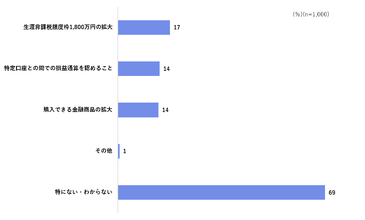 新NISA制度の改善が必要な点「生涯非課税限度枠1,800万円の拡大」17%