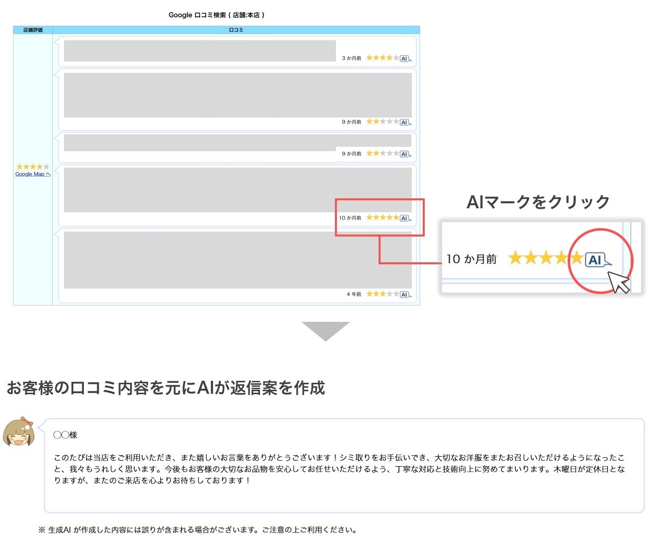 AIでGoogleマップのクチコミ担当者の負担を軽減