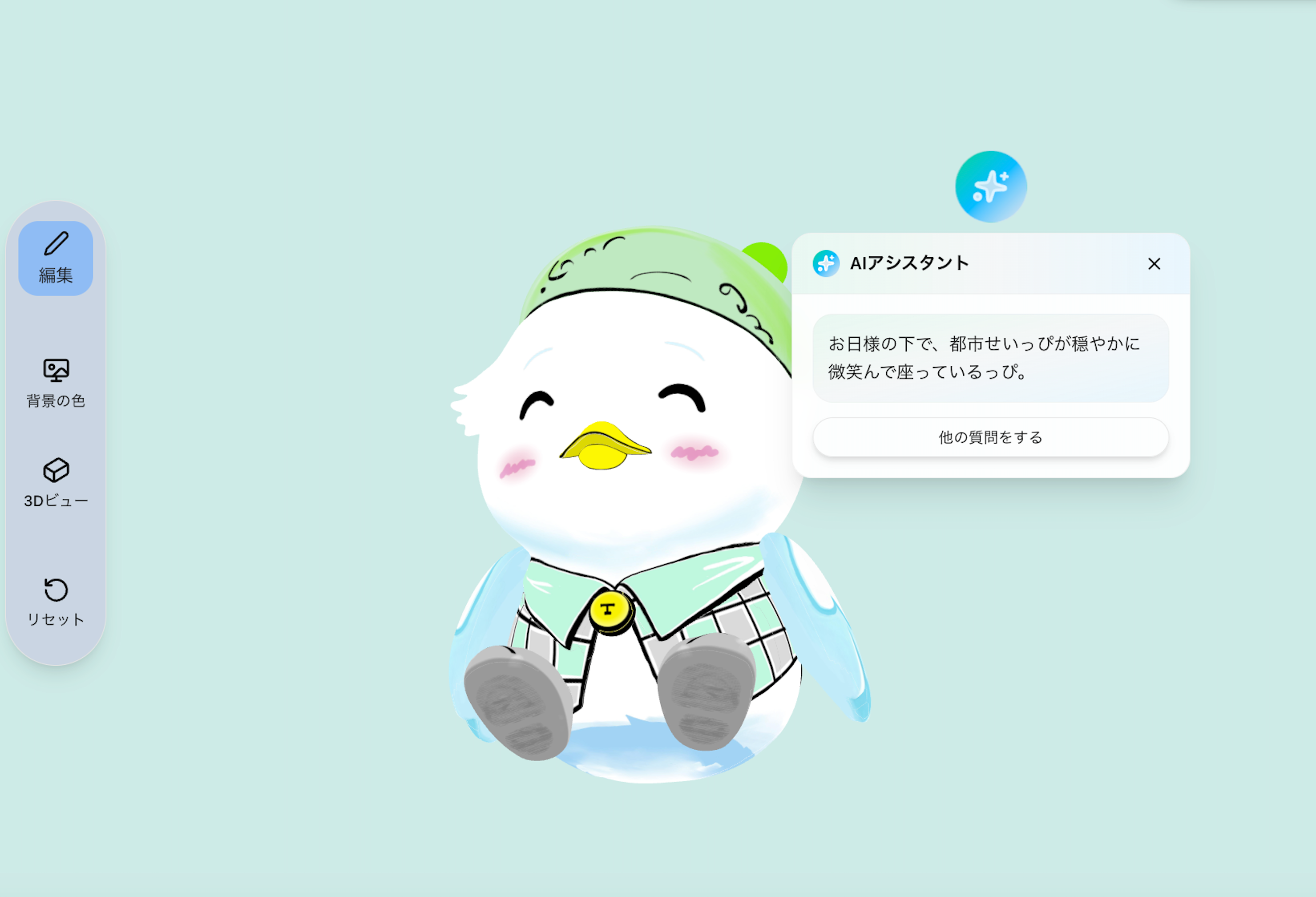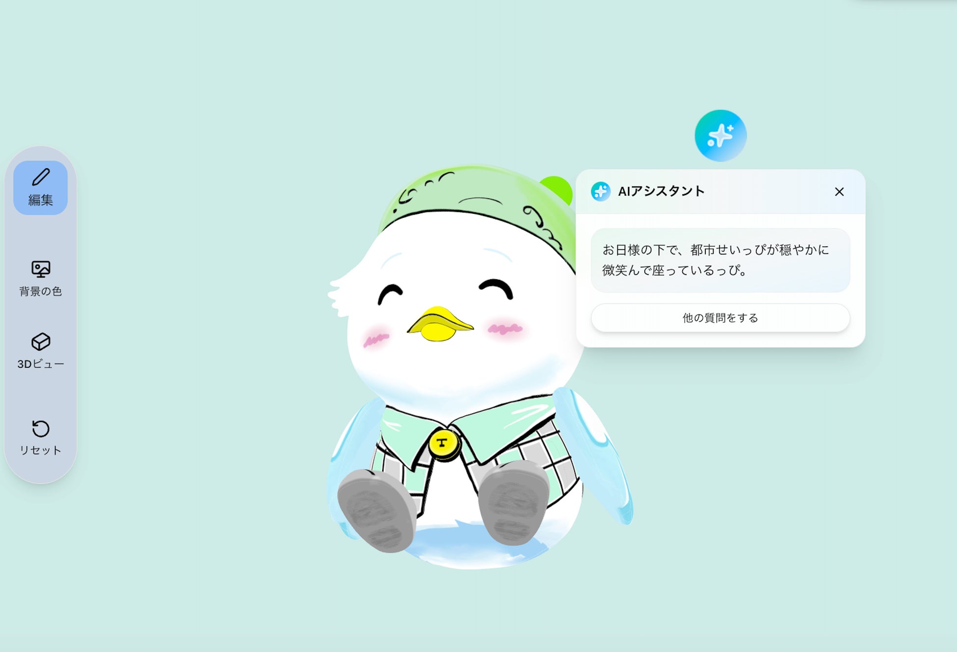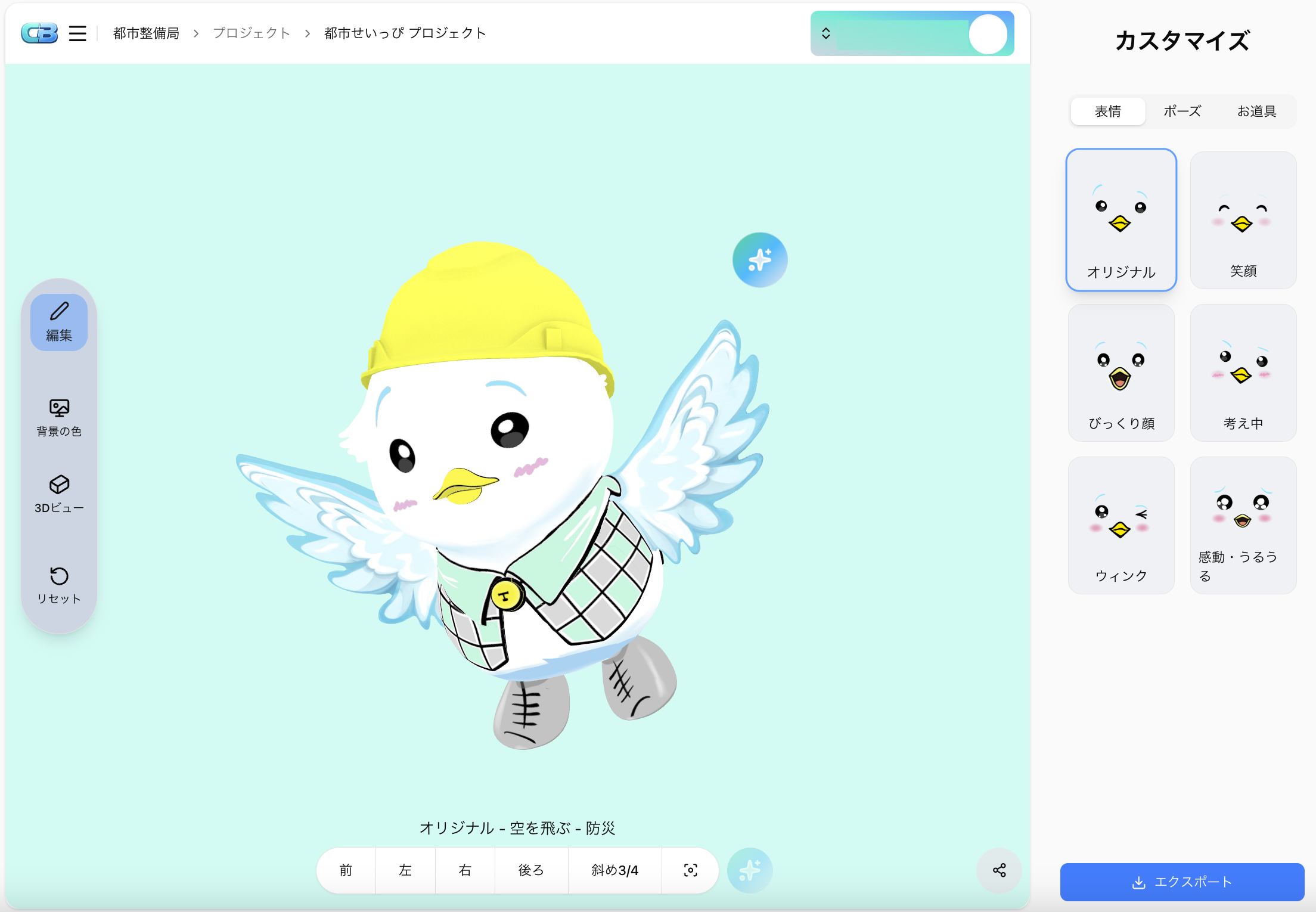 株式会社SuperIOは、先端技術3D・AI・デザインを融合した独自のアプローチにより、平面画像のみ存在していた「都市せいっぴ」を3Dデータ化し、直感的な操作とAIアシスタント機能を備えたプラットフォーム「キャラクターベース」を開発しました。本プラットフォームにより、都職員はポーズや表情などを選択・生成でき、各事業に合わせたキャラクター活用を即座に実現できます。