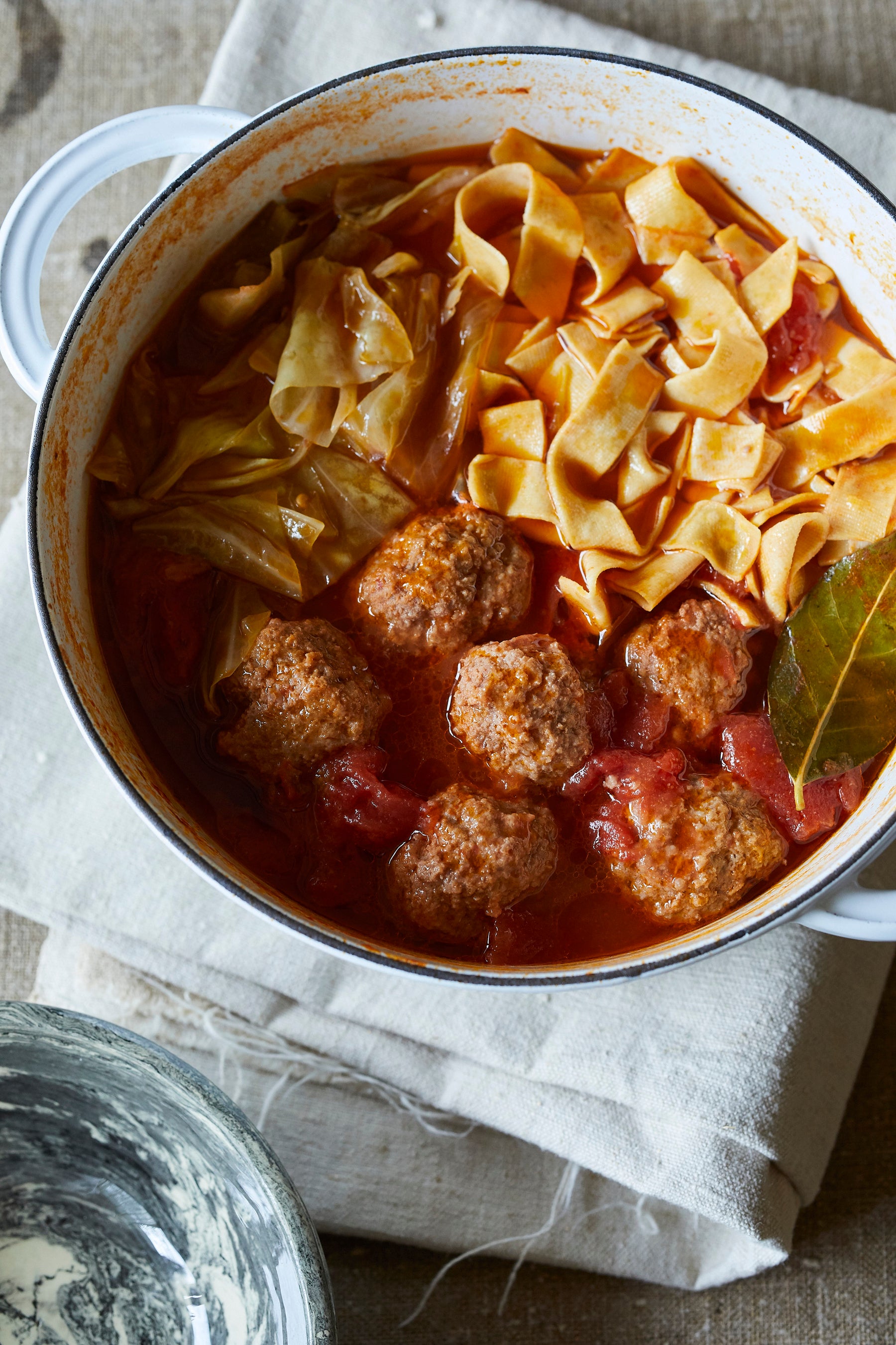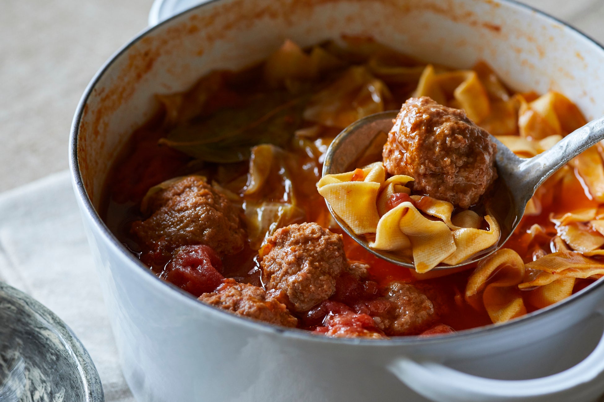 洋風鍋にはソフトな食感が後を引く、平切りの豆腐干がおすすめです。ジューシーなミートボールとも好相性。キャベツとトマトもたっぷり入った食べ応えのある一品です。お好みで玉ねぎやキノコ類を入れるのもおすすめです。