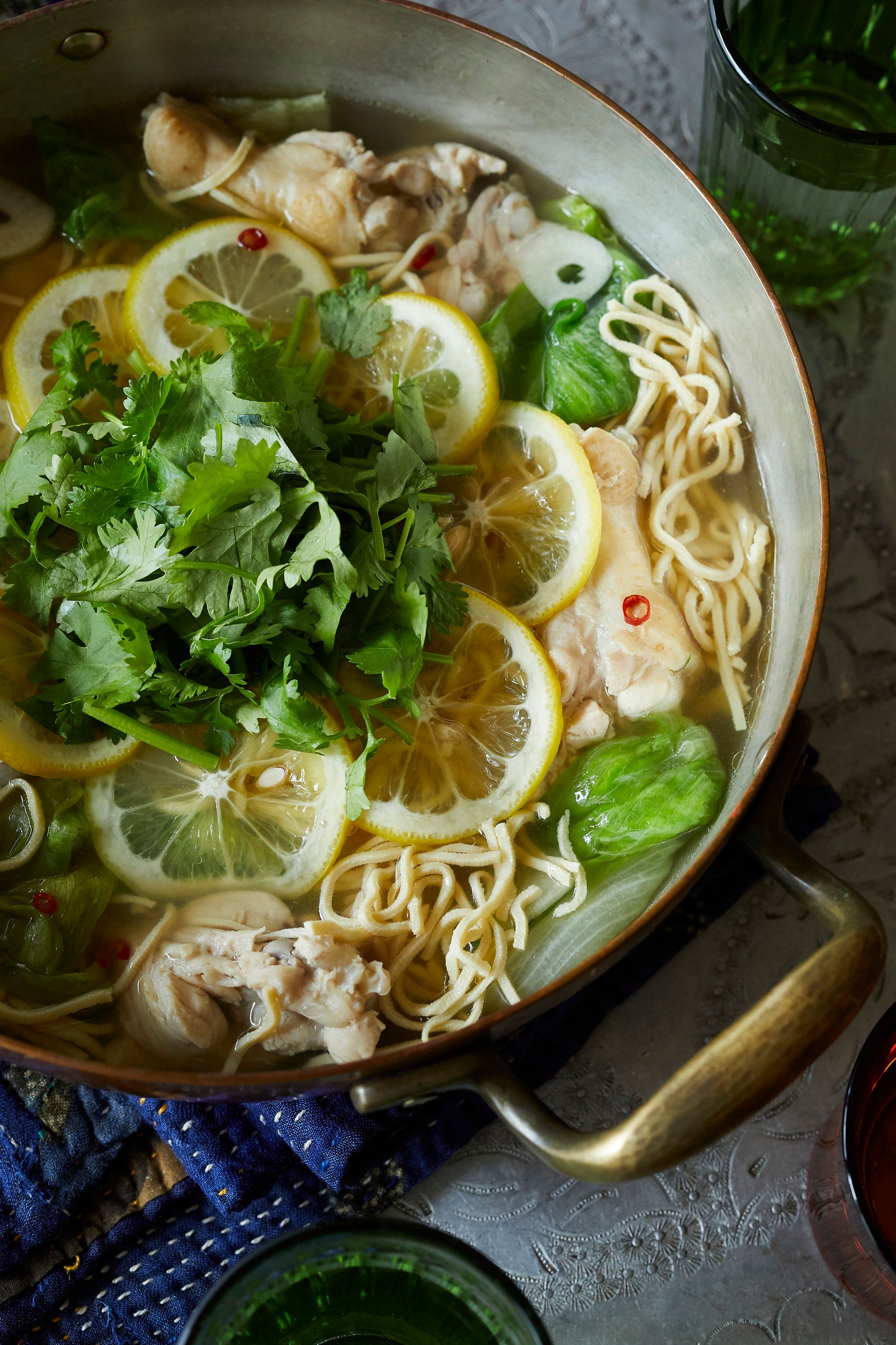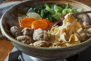 キャベツや大根、人参、小松菜など、くたっとやわらかく煮込んだたっぷりの野菜と、鶏だんご、豆腐干を入れたヘルシーな優しい味わいの鍋です。