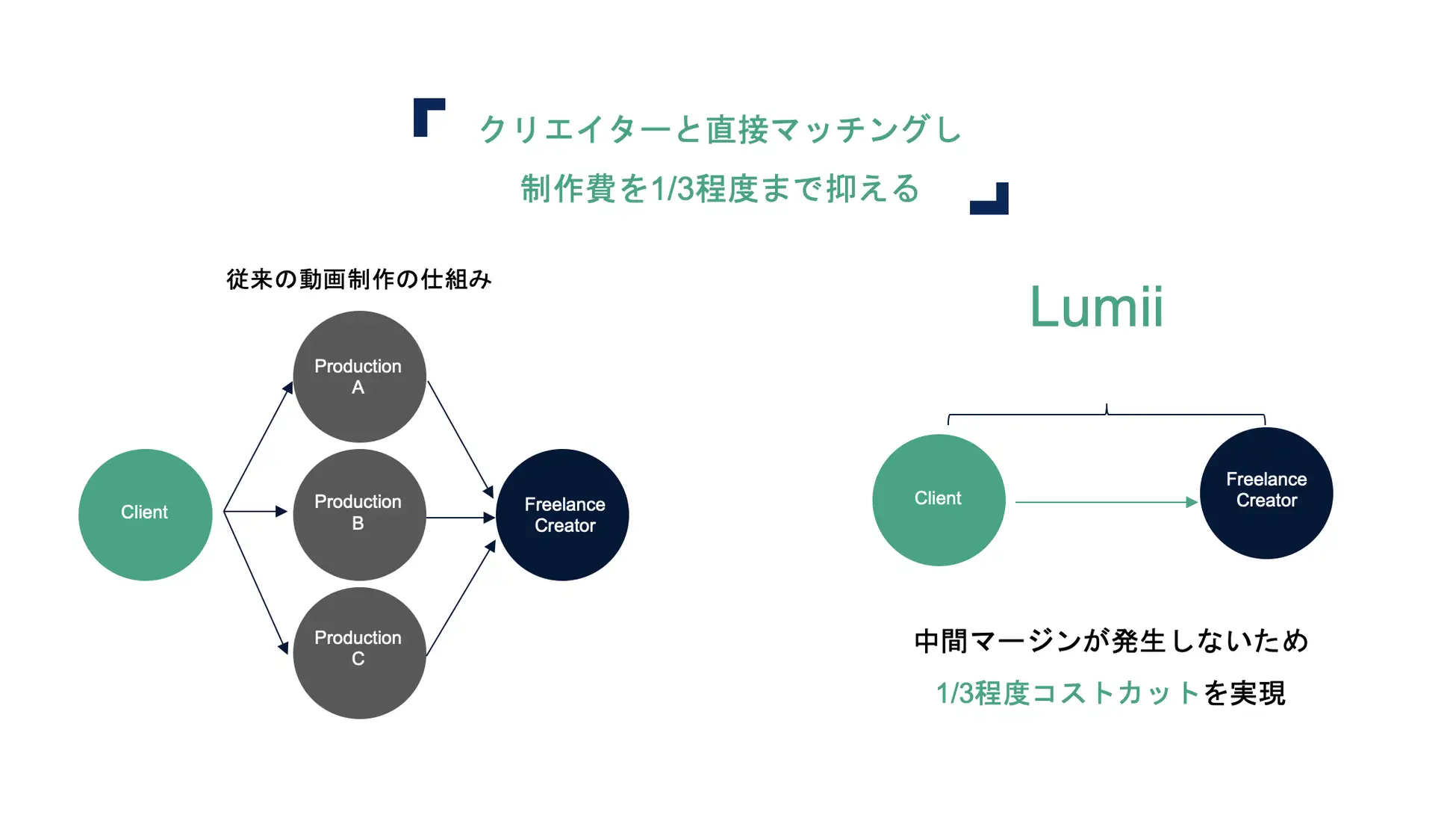 事業内容:動画・映像制作マッチングプラットフォーム「Lumii」の開発提供、広告運用、YouTubeチャンネルコンサルティング