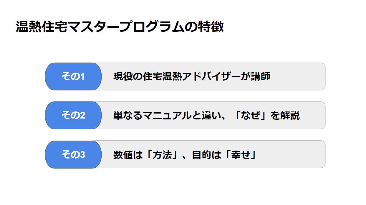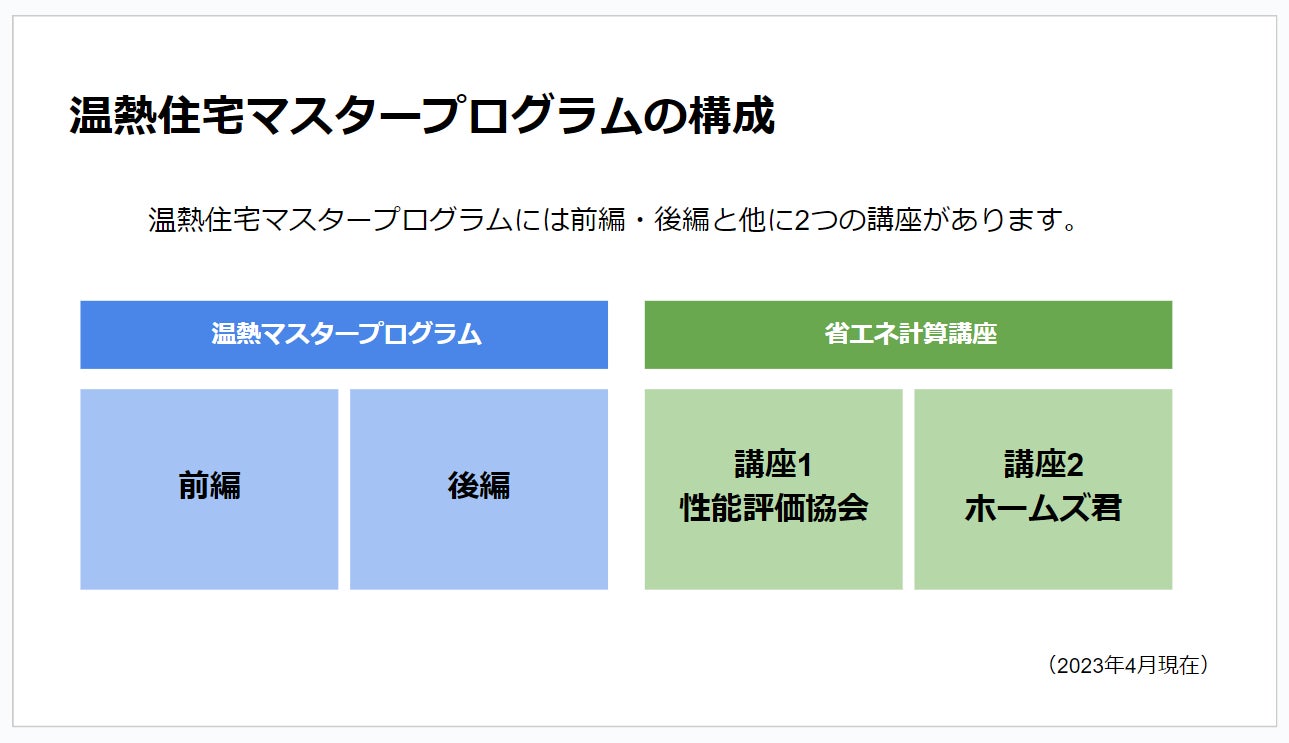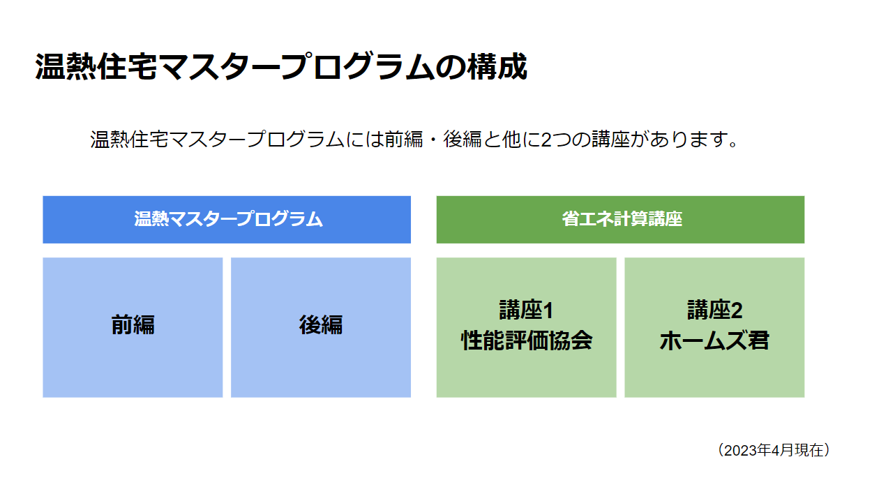 温熱住宅の総合的な知識とスキルを学ぶマスタープログラムの前編・後編、
