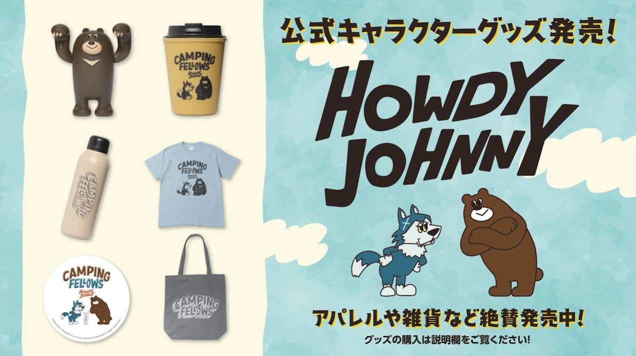 【大人気御礼!】 SNSアニメの鬼才・ファニムビ制作のアウトドアアニメ、「ハウディジョニー」公式キャラクターグッズ『第2弾』が登場!