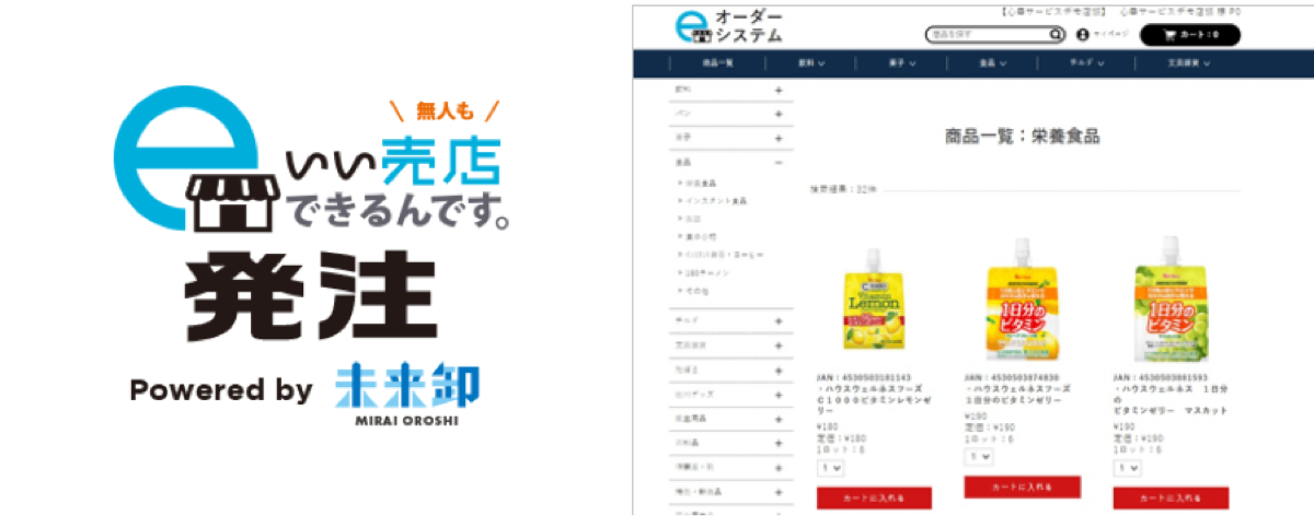 総合卸業を営んできた心幸グループだからできる約1,200アイテムの一括仕入。お菓子、飲料、商品、チルド、日用品まで種類も豊富。発注はスマホ・パソコンから簡単操作で出来ます。