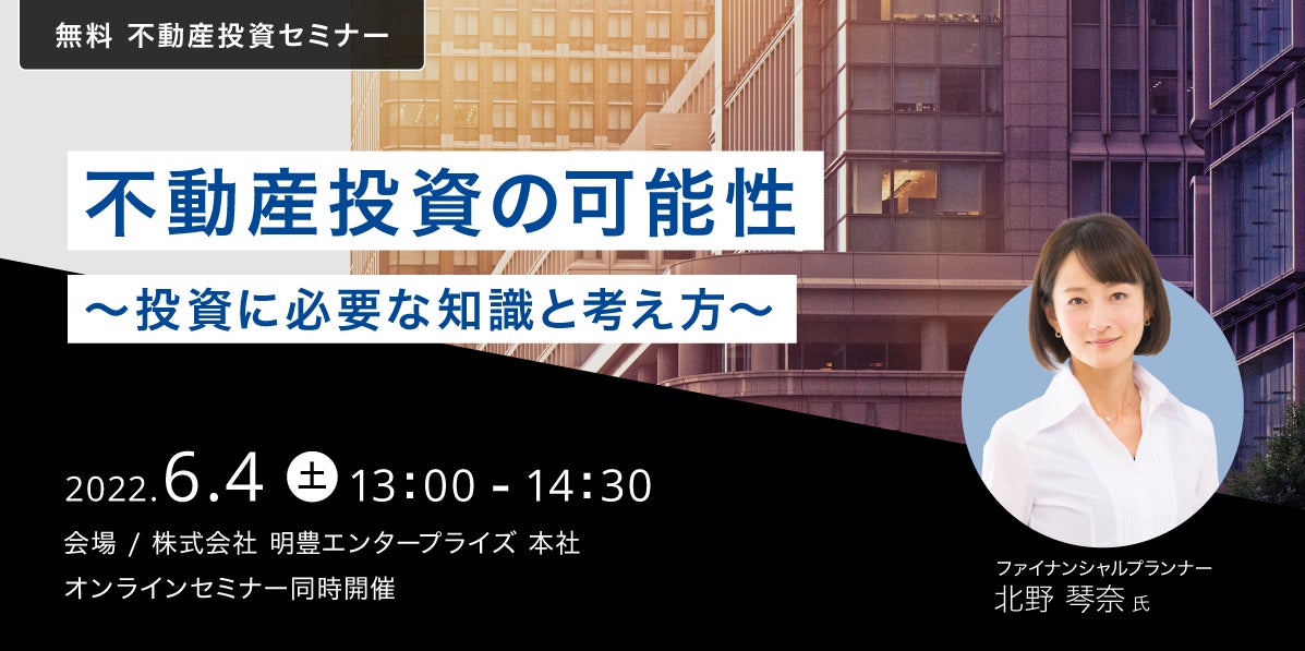- 次回6月4日(土)開催「不動産投資の可能性~投資に必要な知識と考え方~」セミナー概要