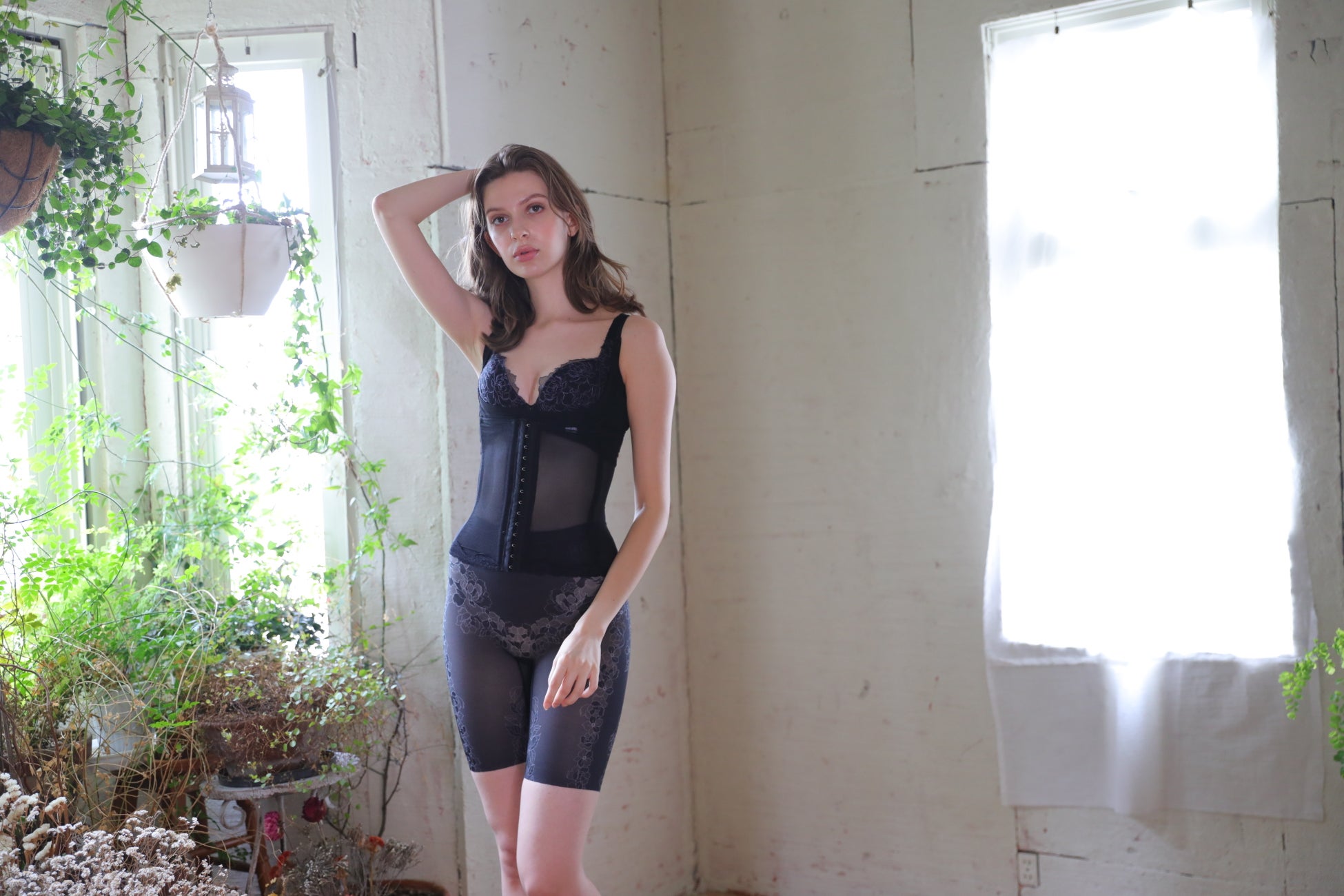 ハード過ぎず適度な伸縮力をもったパワーネットを使用し、前中心の幅は細めに調整を重ねることで圧迫感を軽減。長時間楽な着用感を実現しました。単純に補整力を追求するだけでなく、つけた際の快適さも意識しています。初心者の方でも取り入れやすく、かゆいところに手が届く、アンテシュクレのこだわりを詰め込みました。