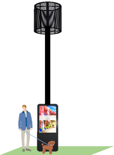 スマートポール機能として、5Gアンテナ基地局ならびに高速Wi-Fiアクセスポイントに加え、災害時における通信環境を持続可能とする非常用バッテリーといった「つながる」機能を完備します。更に、AIカメラによる「見える化」機能で取得したデータをタイムリーに利活用するため、デジタルサイネージとスピーカーを組み合わせた「伝わる」機能も搭載します。昼間人口が多く商業地域として活発な港区エリアにおいて、平常時の人流に沿った効果的な情報発信ツールとして、また、非常時の避難情報の発信等、防災への活用も期待できます。