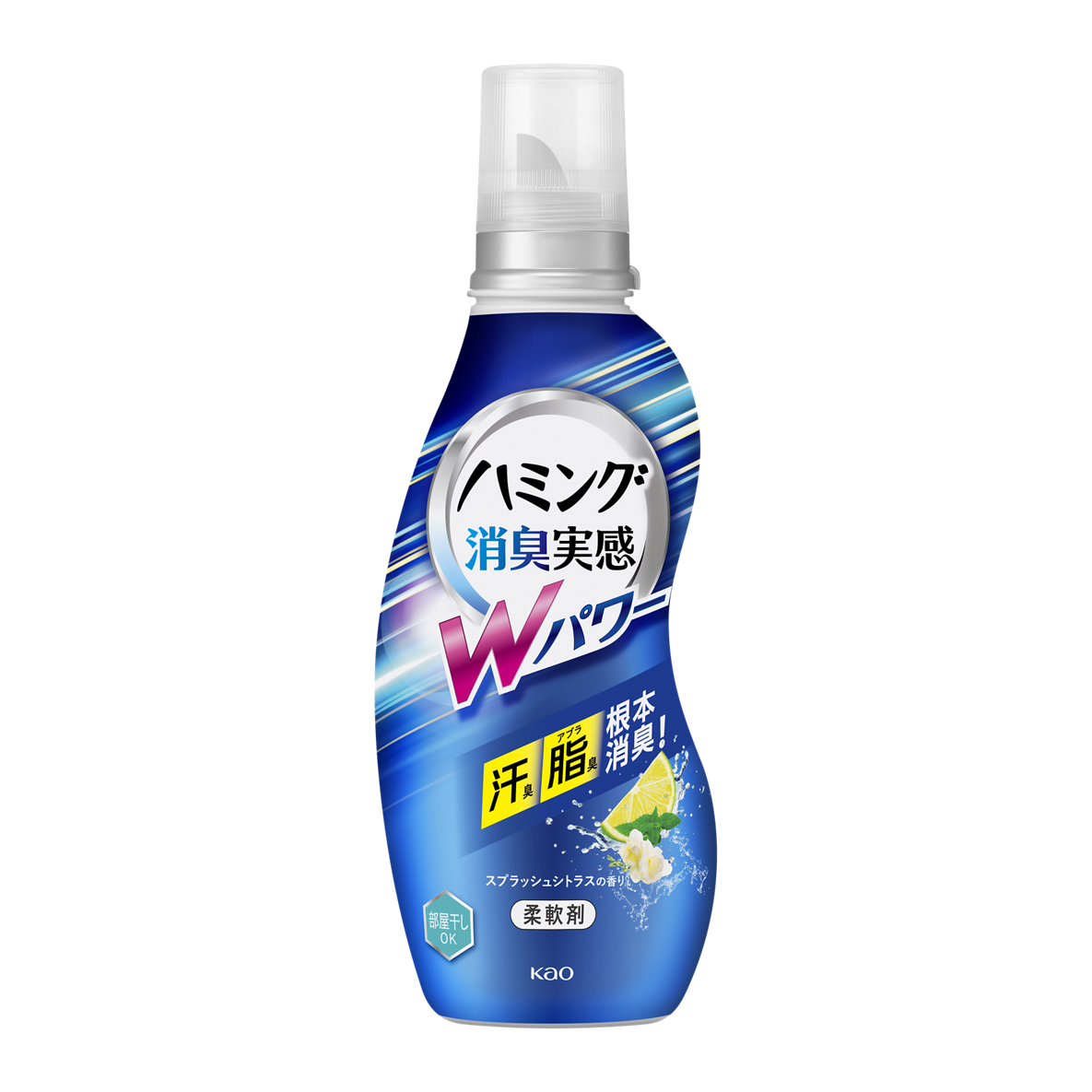 このたび新発売の「ハミング消臭実感Wパワー」は、消臭成分をW配合し、洗っても落ちないと感じる汗臭と脂臭をしっかり消臭します。さらに、ハミング消臭実感シリーズに新搭載の防臭技術として“さらさらコーティング成分”を配合。ニオイの元となる脂が衣類に付着することを抑制し、嫌なニオイの発生をブロックします。また、すっきりとした「スプラッシュシトラスの香り」と、華やかな「フレッシュフローラルの香り」の2つをラインアップしました。