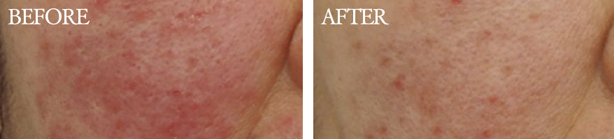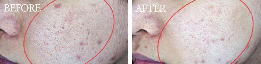 ベーシックな治療としてご紹介したいのが、肝斑や赤ら顔の治療です。そもそも従来のマイクロニードルでは、肌の刺激が肝斑を悪化させる可能性がありました。しかし、ポテンツァでは専用チップを使用することで、肝斑の治療も可能に。また、毛細血管が存在する真皮層へダイレクトにRF(ラジオ波)を照射することで、赤ら顔の原因となる新生血管も抑制します。こちらの治療には、肝斑用、ニキビ・赤ら顔用と、それぞれ専用チップを使用します。