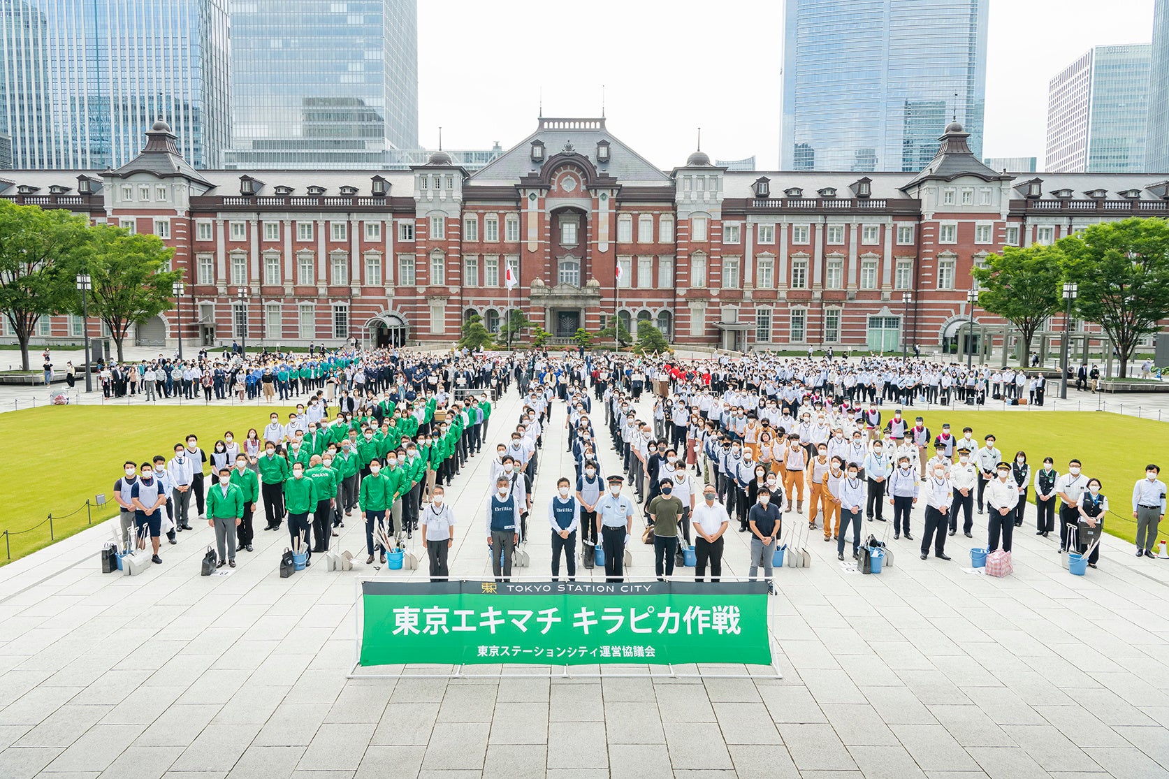 3エリア団体合同の『東京エキマチ キラピカ作戦』として、東京駅と街が一体となった大規模清掃活動です。