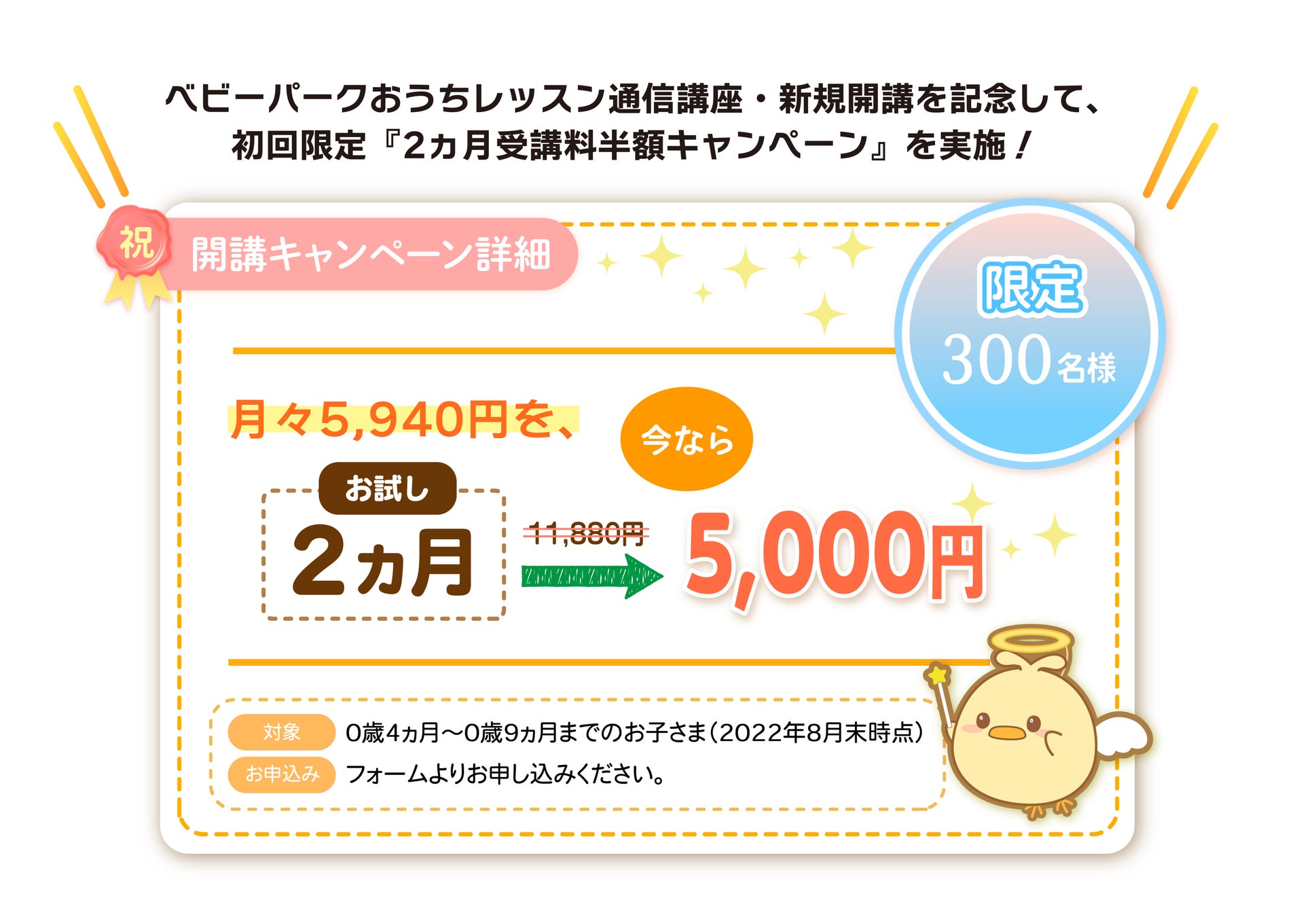 月5,940円のところ、先着300名さま限定で2ヵ月5,000円でお試しいただける大変お得なキャンペーンです。