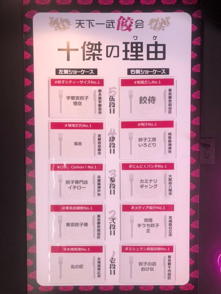 天下一武“餃”会 ~十傑の理由~ :看板を目印にピン!とくる餃子をお選びください