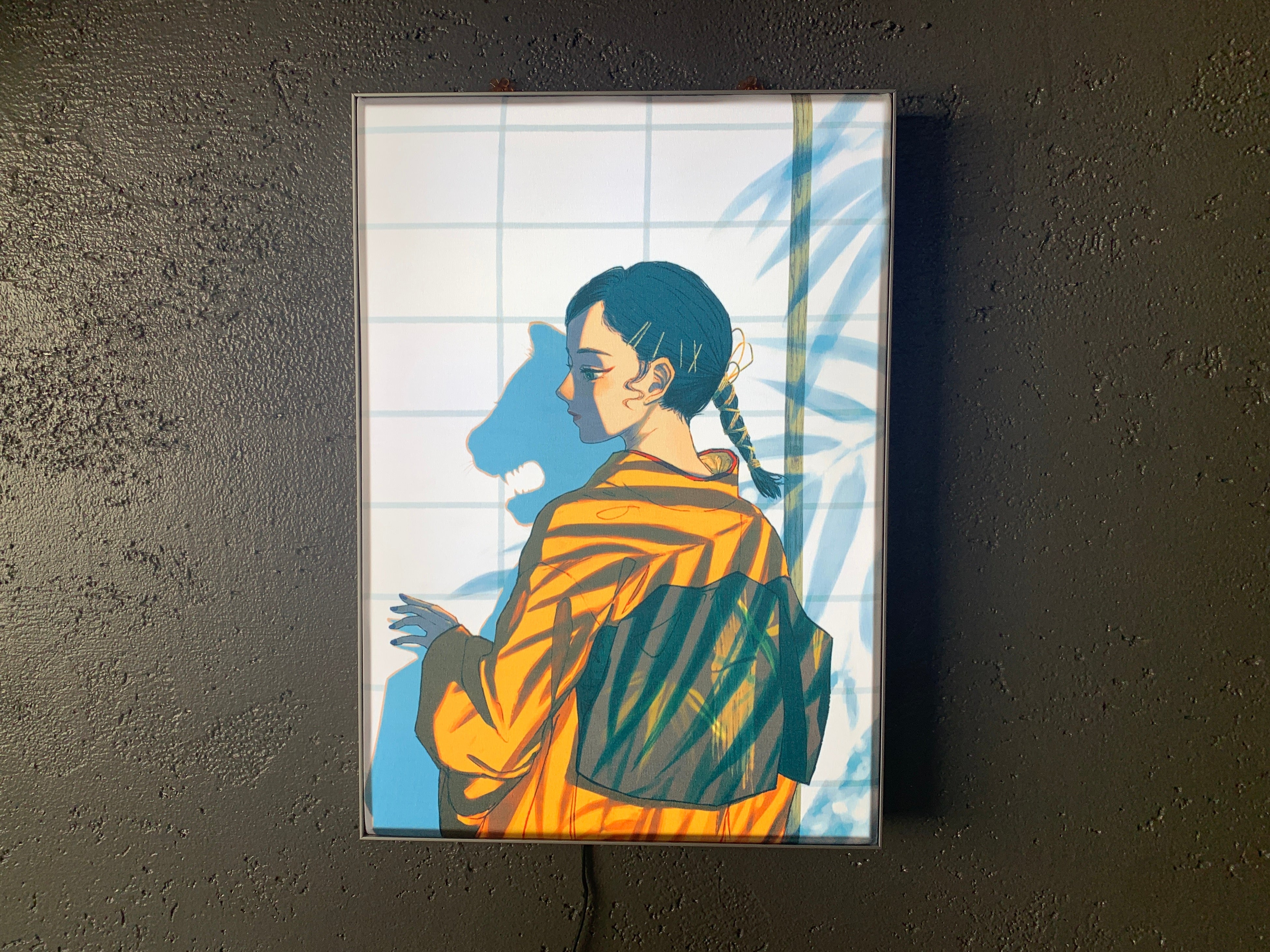 ファブリック生地にプリントを行い、フレームの内側から省電力かつ高品質なLEDで照らすことで、自然で美しい光沢を実現しました。