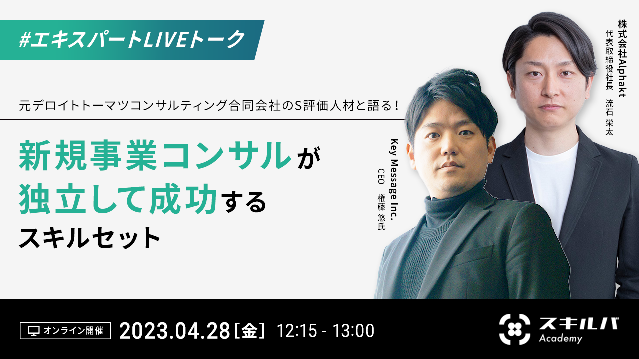 【スキルバアカデミーエキスパートLIVEトーク】元デロイトトーマツコンサルティング合同会社のS評価人材と語る!新規事業コンサルタントが独立して成功するスキルセット