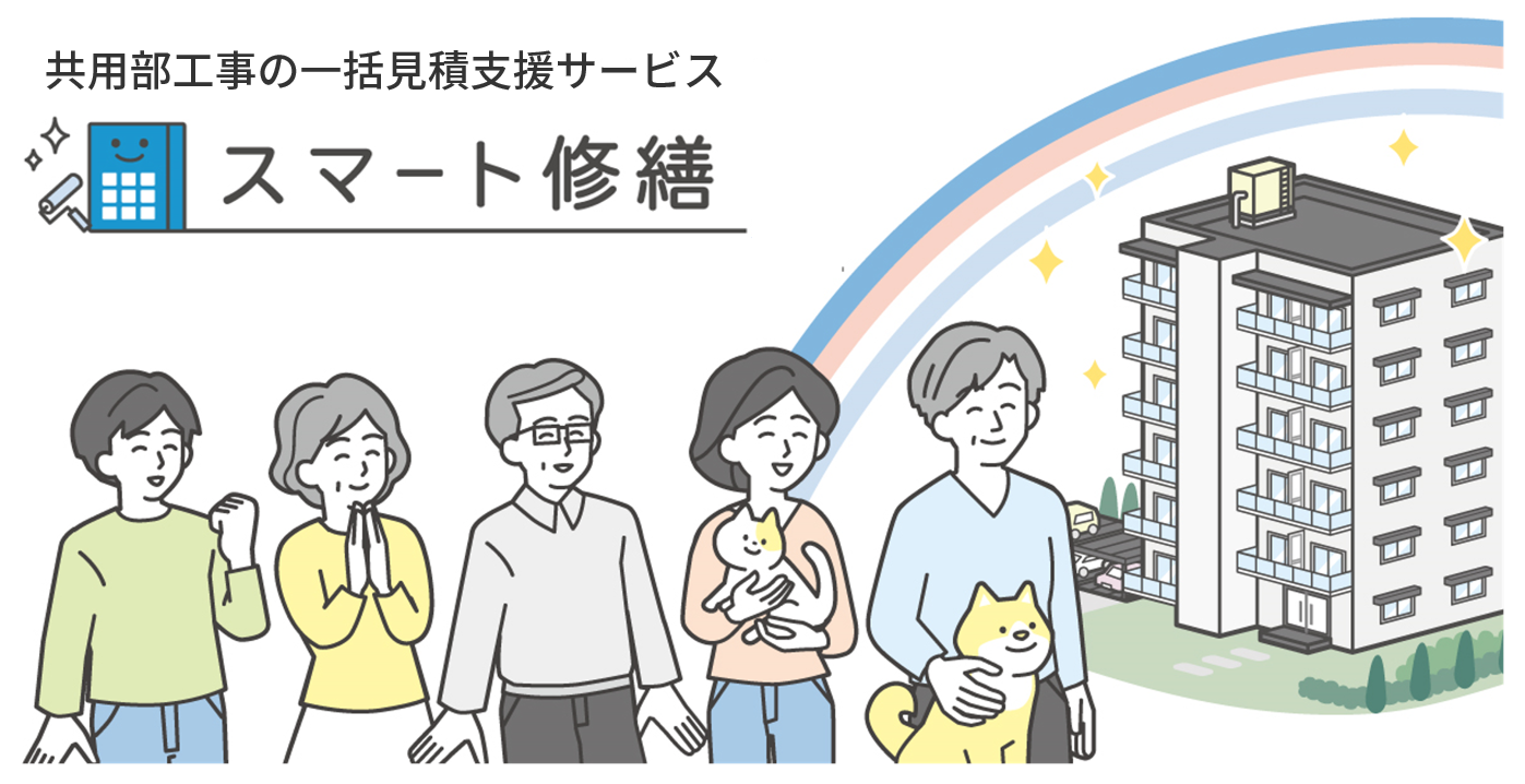 スマート修繕は、パートナー企業と共に「マンション・ビルなど大型建物のリニューアル工事をもっと透明に、もっとリーズナブルに」という世界の実現に邁進してまいります。