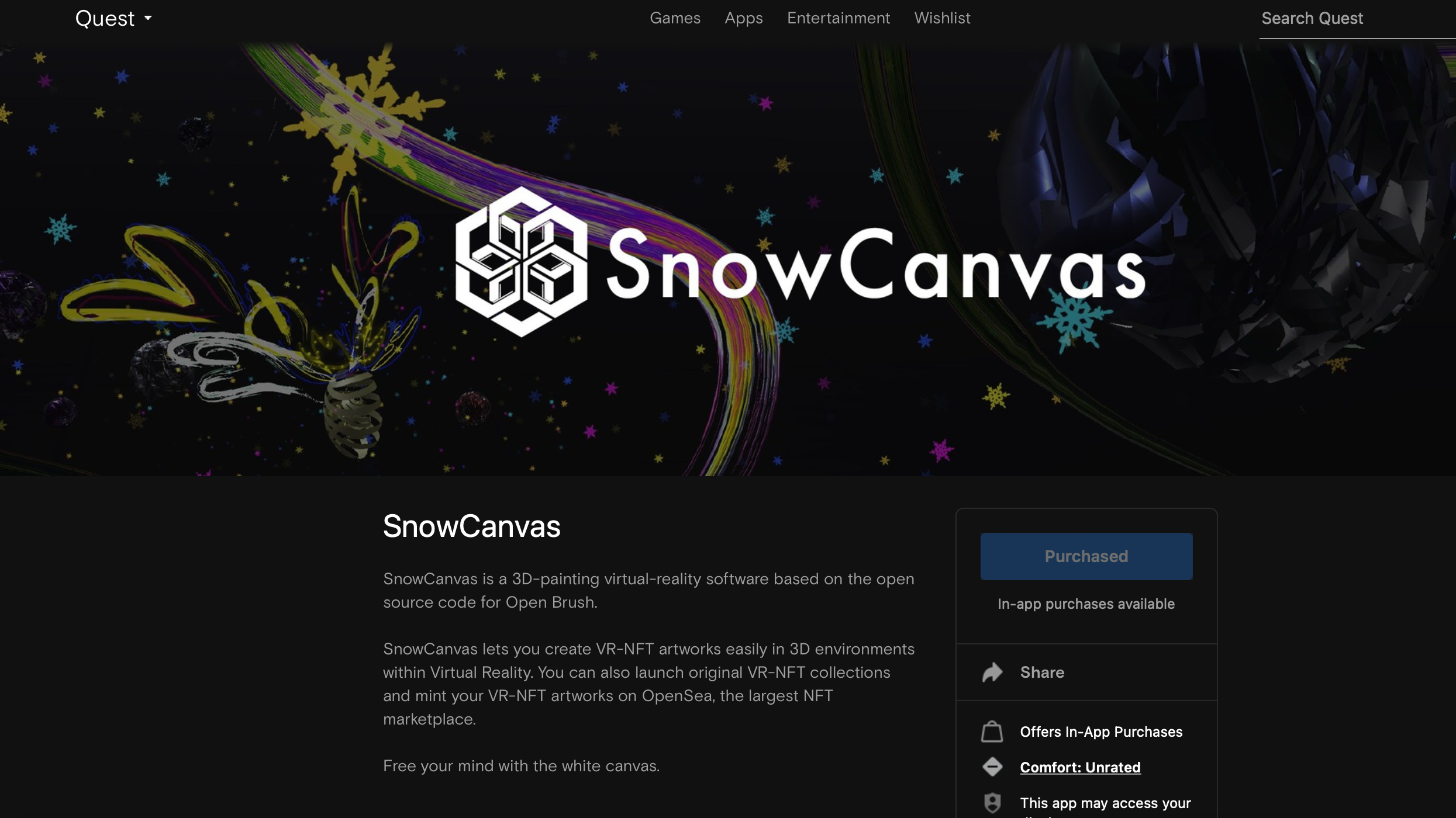 VRNFTアート制作アプリ『SnowCanvas』ベータ版リリース!
