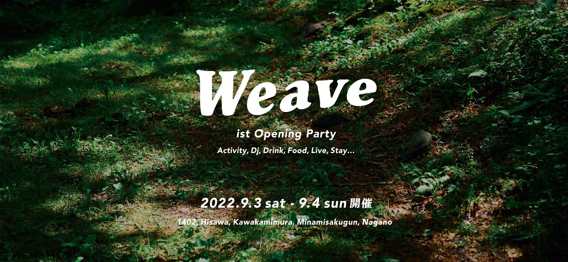 正式オープンを記念して「自然」「音楽」「食」「体験」など、複数の要素を織り合わせ、森の中で様々な過ごし方ができるオープニングイベント「Weave」を開催します。