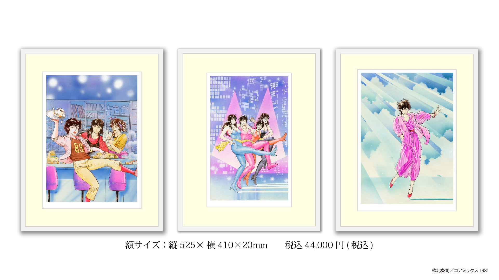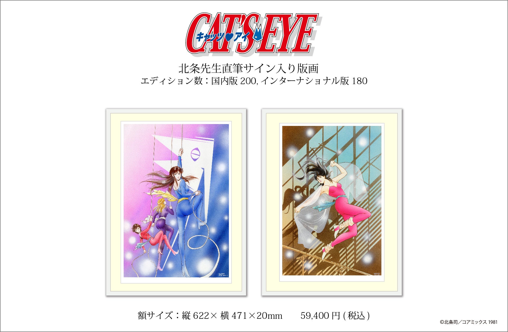 キャッツアイ7点、シティーハンター3点、合計10作品の版画を、枚数限定で発売致します。