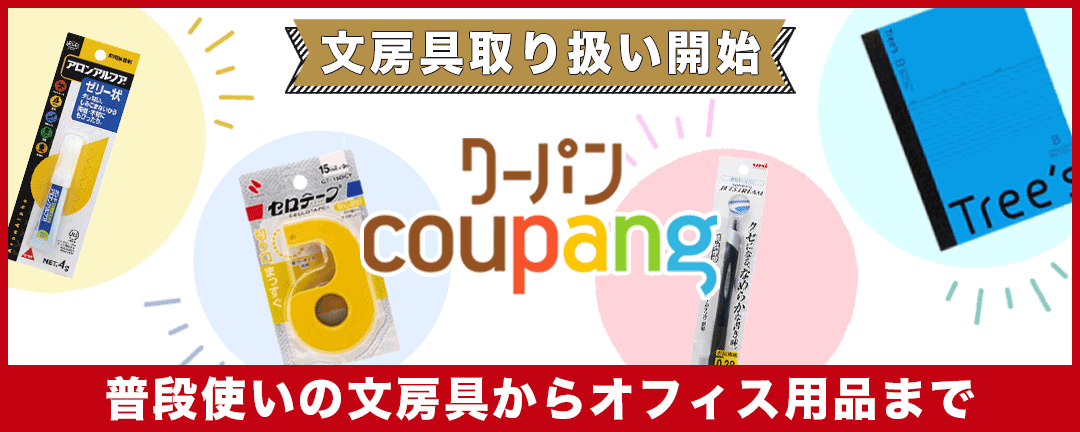 このたび、クーパンは、ペン類、セロテープ、のり、ハサミ、ご祝儀袋、封筒など、不足すると支障が生じる文房具の取り扱いを開始いたします。これにより、クーパンは、文房具製品を、リーズナブルな金額で最短10分でお客様にお届けすることが可能になります。