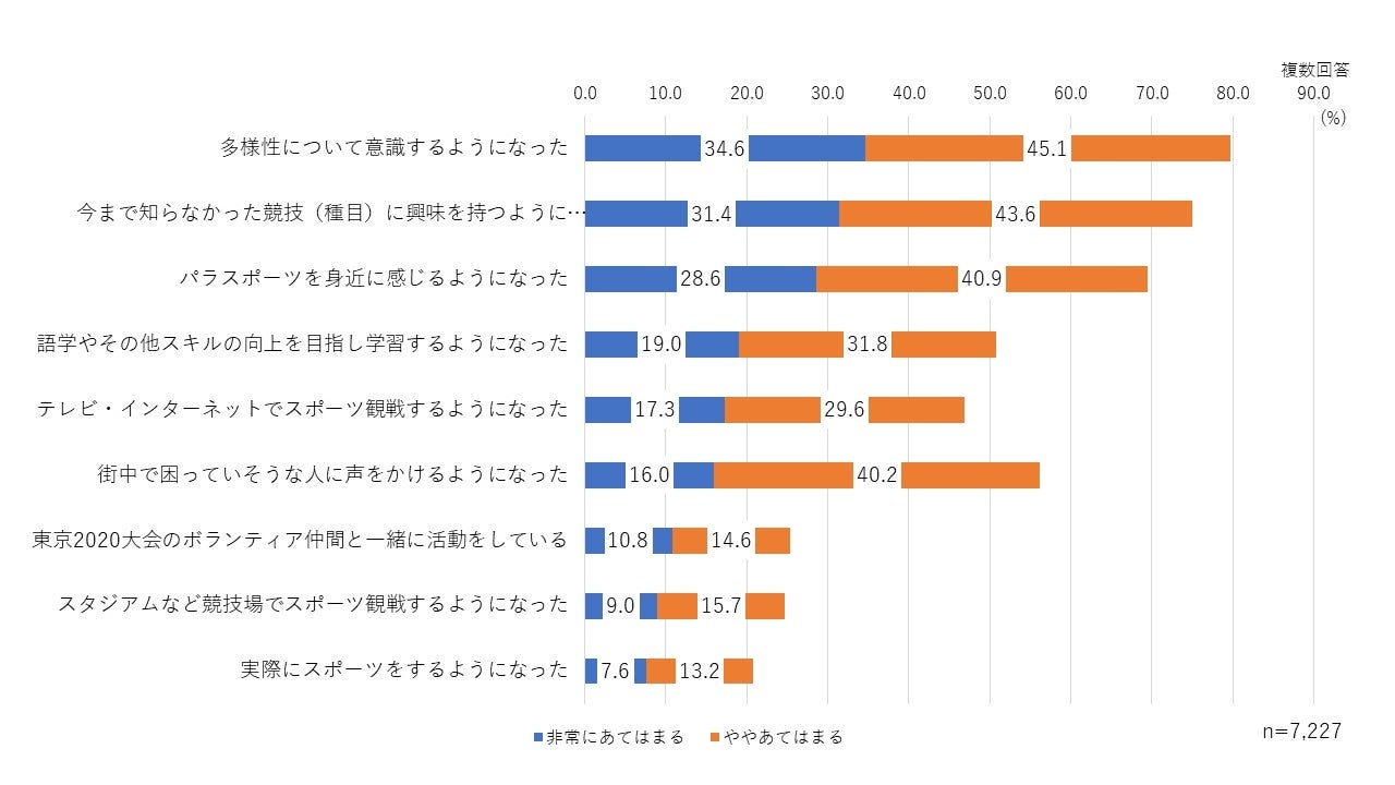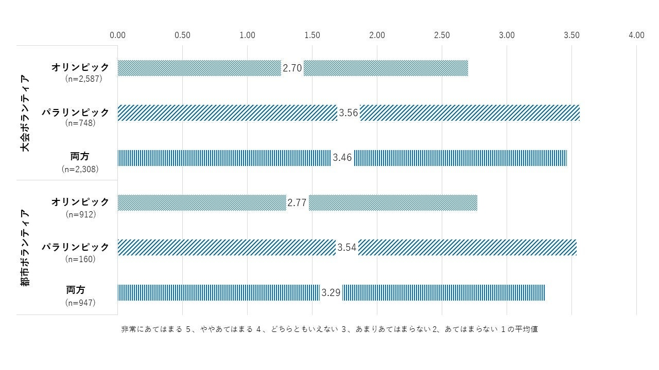 (東京 2020 大会でのボランティア活動経験者と、未経験者の両者が対象)