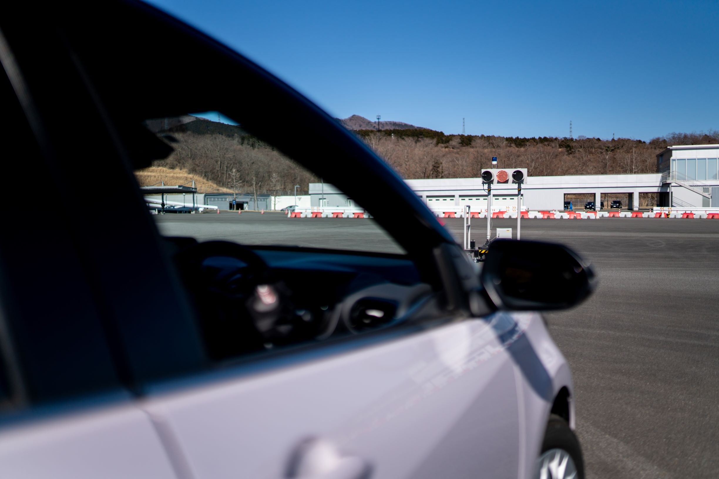 危険を認知してからの空走距離と、緊急時の運転行動を確認します。