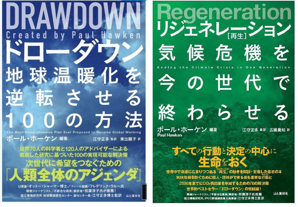 社会起業家/環境活動家であるポール・ホーケン氏によって著された「ドローダウン」と「リジェネレーション」には、気候危機を防ぐために個人・団体ができる最も重要な行動が示されています。