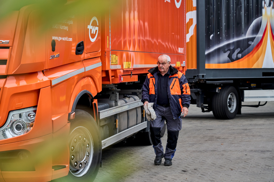 参照:ベルリンを出発する前に最終チェックを行うゲブルダーバイス・ニュルンベルクのトラック運転手、ルドルフキーゼル氏(Rudolf Kiesel)。(出典:ゲブルダーバイス/フロリアンローレンツ)
