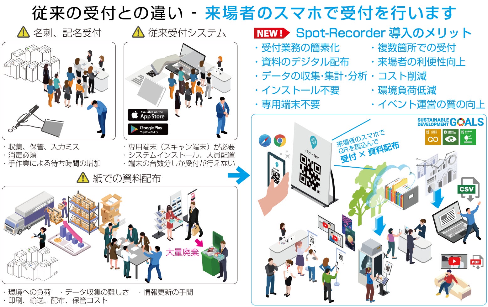 Spot-Recorder導入により、展示会やイベントのデジタルトランスフォーメーション(DX)が促進され、効果的なイベント運営が可能となり、より環境に配慮したイベントが実現できます。