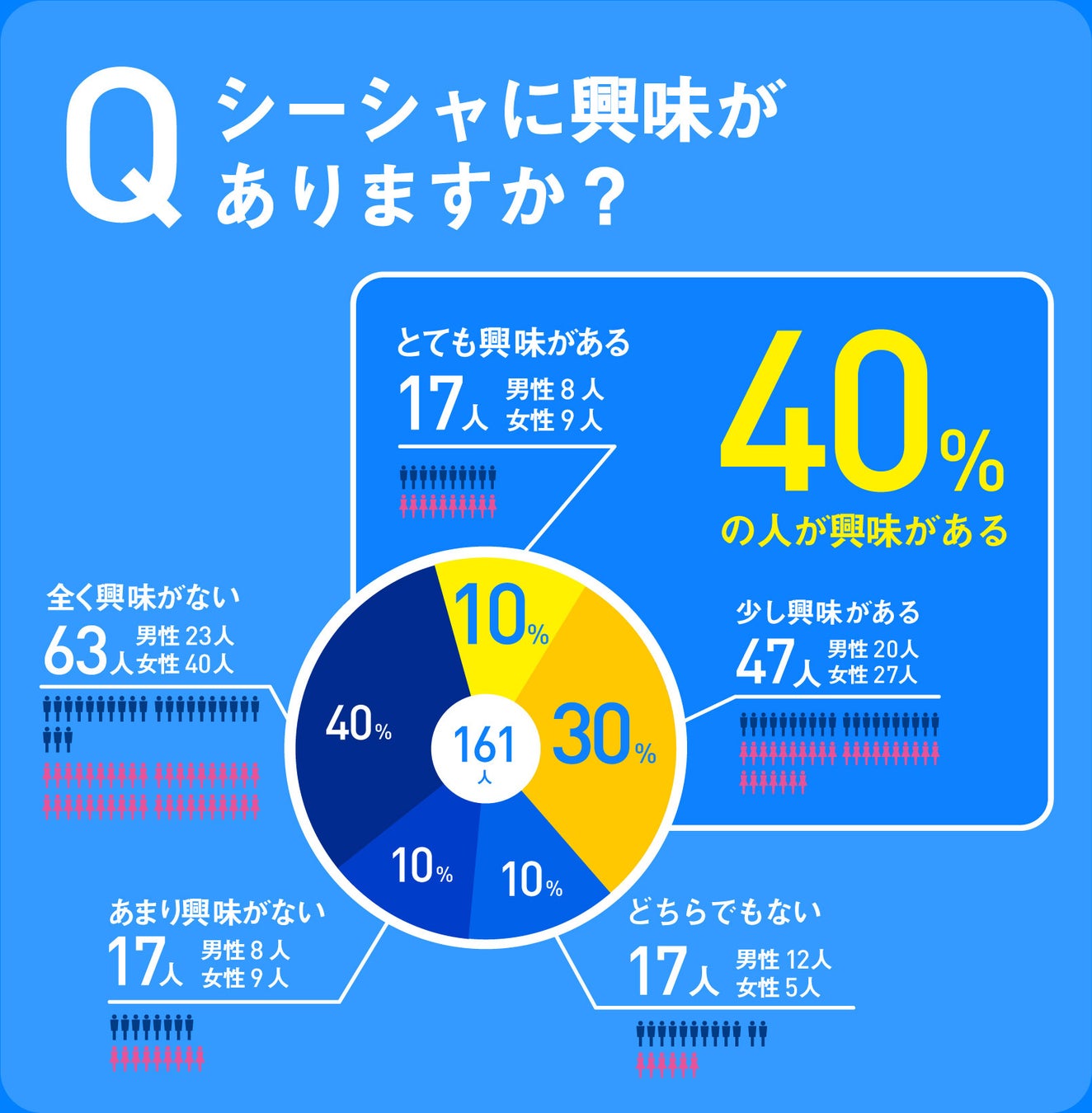 2. 2023年新成人のシーシャを認知している161人のうち64人(39.8%)がシーシャに興味があると回答。
